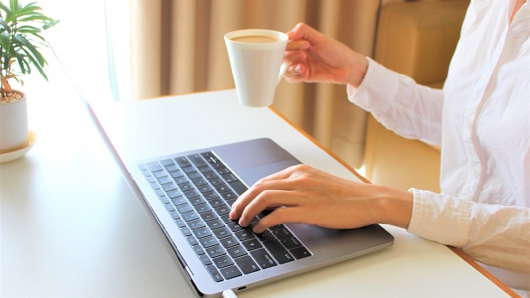 外出先のカフェで一息、打合せ内容を社内へフィードバック。